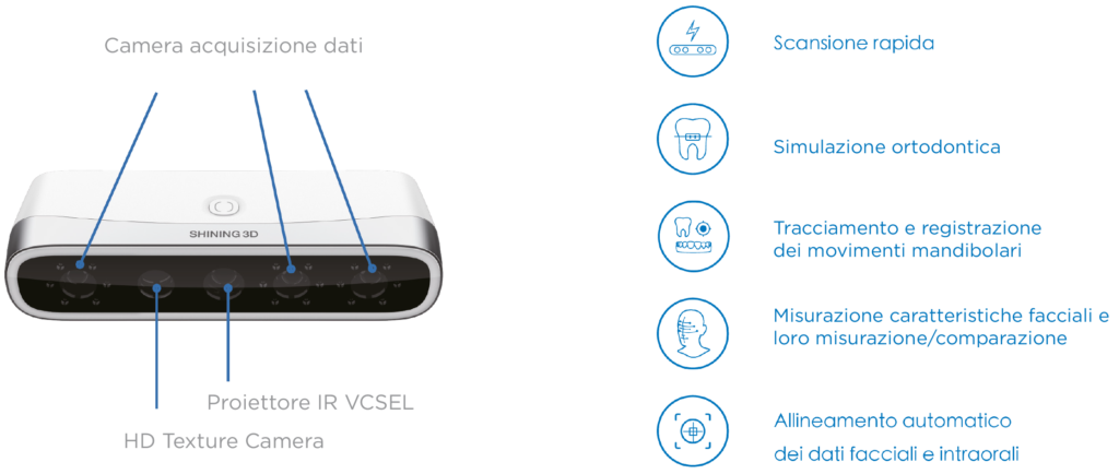 Il software intuitivo è in grado di riconoscere i tratti 3D del viso. Può misurare la distanza delle caratteristiche del viso e confrontare i cambiamenti prima e dopo il trattamento. Questi stru-menti software aiutano i dentisti a diagnosticare e valutare il trattamento in modo più efficace. Inoltre la presentazione visiva accresce la soddisfazione del paziente nei confronti del piano di trattamento proposto.